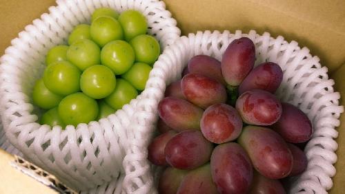人気のシャインマスカットと新品種、神紅(しんく)一つずつのセット商品となります。